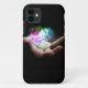 Ein Gehäuse für Ihr iPhone, das meist schwarz ist und ein Handbild mit "Magick" und leuchtenden Lichtorben und ein Pentagramm in der Mitte hat. Ideal für Sie oder Ihre heidnischen Freunde!