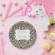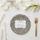 Chic, modern, hübsche Wildtier großen Katzen Leopardendruckpapier Teller in Schwarz, Grau und Orange mit einem grauen Streifen und Weiß mit grauem Banner, die Sie mit den Namen des Ehepaares und dem Hochzeitstag personalisieren können!