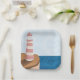 Eine rosa und weiß gestreifte Leuchtturmlandschaft. Dieses Design wirkt auf diese Paper-Teller sehr effektiv