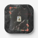 Die mahjong-Papier-Teller sind mit schwarzem Marmor und rotem Blumenmuster gestaltet