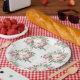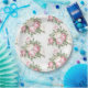 Die Teller aus Party sind weiß mit einem schönen Vintag rosa Rosenprint. Passende Papierservietten sind erhältlich. Passen Sie dieses Objekt an oder kaufen Sie, wie es ist.