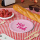 Heiße Pink-Papier-Teller drehen sich um Leidenschaft. Sei leidenschaftlich über dein Leben und deine Umgebung am Valentinstag und jeden Tag. Hot Pink ist Steamy Raimon Originalkunst und Kalligrafie.