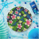 Teller aus rosa und gelbgestrichenem Hibiskus