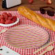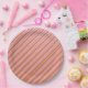 Maßgeschneiderte Teller für jeden Anlass mit doppelter Rosa- und Goldstreifen.