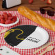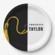 Creative Abschluss Glückwunschs Party Teller mit klassischen schwarzen und goldenen Kappe. Bearbeiten Sie den Text, um den Namen des Senior Class Grades hinzuzufügen.