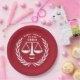Creative Law School Graduation Party oder Anwälte feiern Teller mit lustigen Maßstäben für Gerechtigkeit und einzigartiges Zitat. So personalisieren Sie Text zu bearbeiten, um den Namen Ihres Lieblings-Anwalts oder Anwaltskanzlei hinzuzufügen.