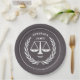 Teller des Jurastudiums mit kreativen Justizmaßstäben personifiziert. So personalisieren Sie Text zu ändern, um den Namen des Anwalts hinzuzufügen.