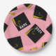 Creative pink, schwarz und gold Graduiertenparty Teller. Bearbeiten Sie den Text, um den Namen des Absolventen und das Senior Class Year hinzuzufügen.