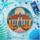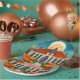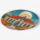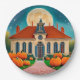 Autum/Fall Moon Papier Teller sind cremefarben, blau, orange, braun.