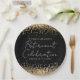 Erstellen Sie passende Teller, um Ihr Party für den Ruhestand in Schwarz-Gold-Glitzer zu erfüllen. Bearbeiten Sie Text für Ihr Ereignis.