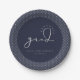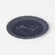 Signature-Skript "grad", Graduierung Partei Papier Teller. Weiße Typografie auf marineblarem Hintergrund mit zartem Deko-Schnittbild.