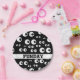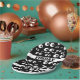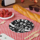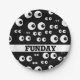 Schwarz-Weiß-Augenbrauen auf schwarzem Hintergrund, Text "Funday" Papier Teller.