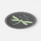 Papier-Teller mit anpassbarem Drachenfliegendesign für ein Party mit Libellen-Thematik. Ändern Sie die Farbe des "gedruckten Hintergrunds", um die Farbe der Libelle selbst zu ändern - die Standardfarbe ist hellgrün! Ändern Sie den Text in ein Monogramm, wohlwollende Wünsche, inspirierende Zitate, oder löschen Sie ihn für ein sauberes Bild-nur-ikonisches Design. Balance aus dem hellgrauen und dunkelgrau, indem die Größe des Bildes zu vergrößern oder zu verringern, um es anzupassen, um das Aussehen gewollt.