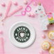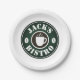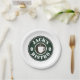 Teller mit dem Logo für die Kaffeebohnen. Fügen Sie Ihren eigenen Firmennamen oder Slogan hinzu. Fun Party Vorräte für Shop, Bistro, Café, Bar, Pub, Lunch Room, Geburtstagsparty, Hochzeit, GRILLEN, Veranstaltung und mehr. Fügen Sie Ihren eigenen personalisierten Text oder Bild hinzu. Vintages Emblem-Design mit Grün- und Brauntönen, inklusive einer Kaffeetasse-Silhouette.