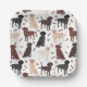 Niedliche Labrador Retriever Hunde in den Farben Schwarz, Schokolade, Rot und Gelb. Labrador Hunde mit Pfotenabdruck und Hundeknochenmuster.