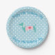 Bezaubernde blaue Polka Punkte mit weicher pastellfarbener Dackel Party Platte und individualisierbarem Namen.