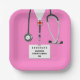 Kreatives Design des Abschlusses der Krankenpflege mit rosa Krankenhausdümpeln. Bearbeiten Sie Text, um den Namen der Krankenschwester hinzuzufügen.