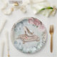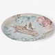 Vintage Brautparty Papier Teller mit hübschen Champagner Rose High Heel Schuh auf einem rosa rosa Kissen und schönen Vintagen Hintergrund. Diese Vintagen Brautparty-Teller sind einfach mit dem von Ihnen gewünschten Text angepasst.
