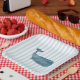 Genießen Sie unsere nautischen Wal Malerei blaue Streifen Papier Teller für jedes Party.