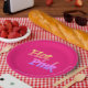 Teller in rosa Großpapier