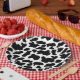 Schwarz-Weiß-Kuh-Muster auf 9"-Tellern. Ideal für Tiere in der Landwirtschaft, für Babyduschen oder Geburtstagspartys.