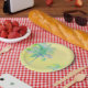 Niedliche pastellfarbene Palmenblätterpapiere Teller. Das kommt von einem Acrylgemälde, das ich auf der Leinwand gemacht habe. Eine lustige Ergänzung zu einem Party im Sommer.