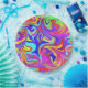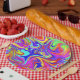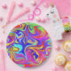 Dieses Bild ist ein Wirbel von vielen Farben auf einer Papierplatte.