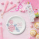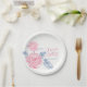 Inkalte Skizze der Rose in Rosa und Blau auf einem weißen Hintergrund maßgeschneiderte Hochzeitspapier-Teller. Eine großartige persönliche Ergänzung zu Ihren Hochzeitstischen oder nach der Hochzeit vom Buffet. Personalisieren Sie die Namen Ihrer Braut und Bräutigam. Ideal für eine Blume mit rosa und blauen Motiven oder eine Gartenhochzeit. Einzigartige Farbgestaltung gezeichnet und gestaltet von Sarah Trett. www.sarahtrett.com für www.mylittleedenweddings.com