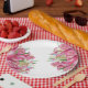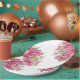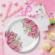 Diese Papierplattenprobe wird mit einem hübschen rosa lililienartigen Kunstdruck gezeigt.