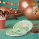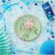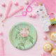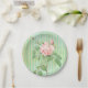 Teller, rosa Rosa, grüner Streifen Pappteller