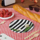 Teller, schwarz und weiß Streifen, Blütenmuster Pappteller