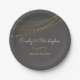 Charcogray und Imitats Gold Foil String Lights Hochzeiten Teller für einen eleganten Hochzeitstag Empfang oder Probe Dinner. Name und Datum können auf dieser Platte aktualisiert werden.