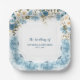 Teller von Hochzeitspapieren mit blauer Blüte