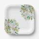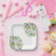 Die Papiertafel aus Party wird in Weiß mit einem Kunstdruck von schönen weißen Lilien gezeigt. Passende Papierservietten sind erhältlich. Passen Sie dieses Objekt an oder kaufen Sie, wie es ist. Bild