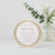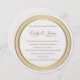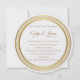 Diese Hochzeitseinladung wird in einem runden Layout auf einem weißen Hintergrund in einem Papier aus Peal Shimmer Papier gezeigt. Wählen Sie Ihr Wunschpapier aus. Goldener Ton, der rund um den Umschlag der Umrandung des Kreises wirkt. In goldener Farbe dargestellt. Passen Sie dieses Element an, indem Sie den Beispieltext nehmen und stattdessen Ihre Informationen darin einfügen. Bild auf Lager.