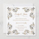 Diese Hochzeitseinladung wird in einem klassischen Layout auf einem frisch quadratischen Einladen gezeigt. Weißer Hintergrund in einer Papierauswahl aus Filz dargestellt. Wählen Sie Ihr Wunschpapier aus. Extravagante goldene Töne Blätter Rand Grafik. Familienname des Paares Nachname in einer Silver-Graue Farbe hervorgehoben. Text in Golden. Ändern Sie die Farbe, wenn Sie es vorziehen. Auf Wunsch weiter anpassen. Ändern Sie den Beispieltext in Ihren eigenen. Ein Perlenschimmer oder Champagner-Schimmer wäre eine nette Option zum Filz. Bild auf Lager.