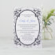 Dieser in einem immer beliebten Perlschimmer präsentierte Einladung ist mit einem pastellfarbenen Silber-Grau-Koronationsmuster versehen, das vorne und hinten im Hintergrund bedruckt ist. Ein dunkles Saphir Oval mit extravaganten Blatt-Reben-Arbeiten umrahmt den Text im Inneren. Die Namen von Braut und Groom werden in einem weichen Blau hervorgehoben. Text in Sapphire Blue gezeigt. Wählen Sie Ihre Papierauswahl und passen Sie auf Wunsch Ihre Bilder an.