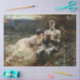 Dieses Design zeigt ein Gemälde von Arthur Hacker (1858-1919). Es zeigt Sir Percival, einer der legendären Ritter des Runden Tisches von König Artus. Er wird von einer erstaunlich schönen Frau geärgert, die versucht, ihn in Versuchung zu bringen, sich an den Freuden des Fleisches zu erfreuen. Sie hat ihm Essen und Wein gegeben. In der legendären Geschichte ist die schöne Frau tatsächlich der verkleidete Teufel, der versucht, Sir Percival daran zu hindern, den Heiligen Gral zu erlangen. Sie schmeichelt und flirtet mit ihm bis zum allerletzten Moment, als Sir Percival die Gefahr erkennt, in der er sich befindet. Das Originalwerk wurde 1894 gemalt.