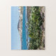 Ein schöner Blick auf das Dorf Los Cristianos auf Teneriffa auf den Kanarischen Inseln, gedruckt auf ein Rätsel.