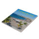 Ein Panoramablick auf den Playa Torviscas auf Teneriffa auf den Kanarischen Inseln auf einer Keramik aus Souvenirmaterial.