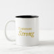 Die "Tennessee Strong" Zwei-Tone-Kaffee-Tasse verkörpert zeitgenössische Design-Trends und feiert gleichzeitig die Widerstandsfähigkeit und den Geist von Tennessee. Diese Tasse, die mit einem scharfen Blick für moderne Ästhetik gestaltet wurde, verbindet die minimalistische Eleganz nahtlos mit einer wirkungsvollen Botschaft. An der Vorderseite der Tasse wird die kühne, stilvolle Typografie gezeigt, die "Tennessee Strong" in goldenen Buchstaben ausdrückt. Der Einsatz von Goldakzenten verleiht der Tasse eine Touch von Luxus und Prestige, was die visuelle Anziehungskraft erhöht und eine kraftvolle Aussage macht. Die Wahl des Schriftartes spiegelt moderne Designsensibilitäten wider, mit schlanken Sans-Serif-Figuren, die ein Gefühl von Stärke und Widerstandskraft vermitteln.