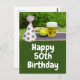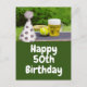 Tennis 50. Geburtstag mit Ball und Bierpostcard Geschenke für Tennisliebhaber zum Jubiläum des Tages, an dem eine Person geboren war, in der Regel als Anlass für Feiern und das Geben von Geschenken behandelt.