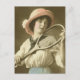 Vintag gefärbtes Foto einer hübschen jungen Frau mit einem Tennisschläger.
