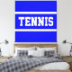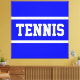 This sporty design features athletic TENNIS text inside white racing stripes against bright blue background. The text and colors can be personalized.