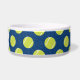 Niedliche Hundeschüssel mit lustigen Tennisbällen und einem Hundeknochen mit dem Namen Ihres Hundes im Knochen.