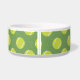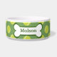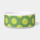 Niedliche Hundeschüssel mit lustigen Tennisbällen und einem Hundeknochen mit dem Namen Ihres Hundes im Knochen.