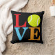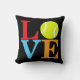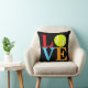 Ein Throwkissen für die Tennisperson von Pop-Kunst LIEBE mit einem gelben Tennisball für das O. Der schwarze Hintergrund kann in redigieren geändert werden fallenlassen unten Menü.