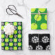 Tennis Ball und Snowflake Schwarz & Grün Weihnacht Geschenkpapier Set