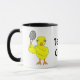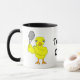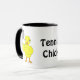 Ein gelbes Küken mit einem Tennisschläger und -ball ist ein lustiges Geschenkdesign für Tennislehrer und -spieler. Text kann geändert werden