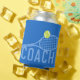 Personalisierter Tennis Coach Can Cooler mit modernem und unterhaltsames Design und individuellem Text auf der Rückseite für ein Jahr, Clubname oder Name der Tennisschule, ideal für einen Tennistrainer oder Clublehrer, um kalte Getränke behalten. Ändern Sie den Hintergrund und alle Farben, um ein passendes Geschenk-Set für andere Gegenstände aus dem Paper Traube Designer Store zu erstellen.